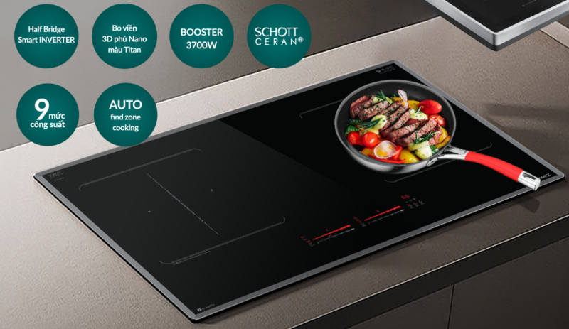 Chức năng Booster 3700W: Đun nấu siêu nhanh, tiết kiệm thời gian tối đa.