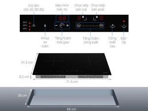 Bếp từ có tổng công suất 4200W, mỗi vùng nấu tối đa 2000W và đạt 2200W khi sử dụng Booster gia nhiệt nhanh