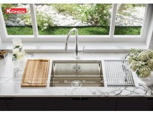Model KN6046SU – Đây là dòng sản phẩm dành cho bàn bếp có diện tích tương đối hạn chế những vẫn yêu thích phong cách chậu hạ bậc – tích hợp công năng của Konox.