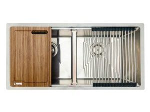 Dòng chậu hạ bậc – tích hợp công năng: thớt gỗ, rollmat