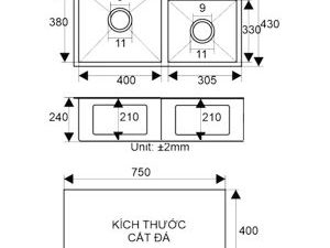 - Kích thước khoét đá: 75 x 40cm (Dài x Rộng)
