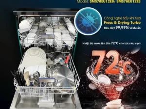Máy rửa bát Eurosun SMS78EU12EB nhập khẩu nguyên chiếc từ Thái Lan với thiết kế sang trọng cùng công suất rửa 13+ bộ bát đĩa, an toàn, bền bỉ và tiết kiệm năng lượng