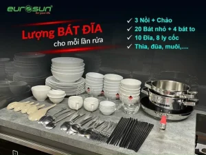 Máy rửa chén Eurosun SMS78EU12EB có dung tích chứa 12 bộ đồ ăn Châu Âu