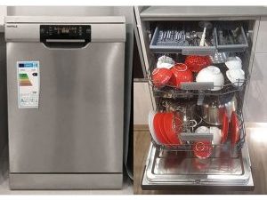 – Khoang rửa bằng inox, 3 giàn chứa được 15 bộ bát đĩa theo tiêu chuẩn Châu Âu.