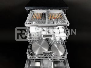Richborn RDP6080SPB Có khoang máy có dung tích lớn, rộng rãi và có thiết kế các ngăn đựng riêng biệt cho từng loại vật dụng giúp việc vệ sinh chén bát thuận tiện nhất. Điều này giúp bát đĩa, ly thủy tinh không bị trầy xước và phân loại riêng biệt để quy trình rửa diễn ra dễ dàng.